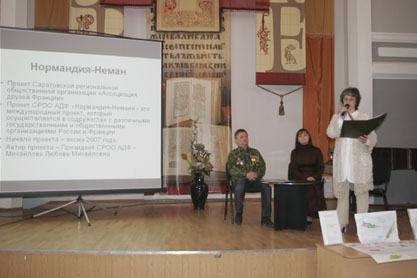 L'auteur du projet, Liubov Mikhaylova, a adresse a tous ses felicitations al'occasion du premier anniversaire du projet Normandie-Niemen de l'ADF de Saratov. |