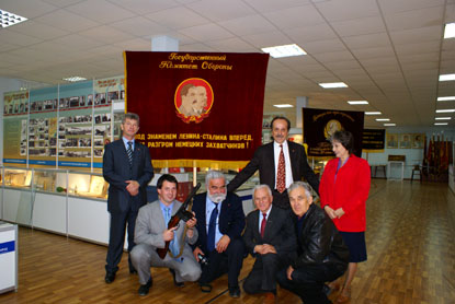 Au Musee d'histoire de l'Usine des avions (Saratov). 3 octobre 2008. Anatole Fetissov - President de l'Association des veterans russes du regiment Normandie-Niemen, Colonel, Pilote militaire emerite, Moscou - la Russie; Rene Barchi - membre d'honneur de l'Association des veterans russes du regiment Normandie-Niemen et membre actif du Memorial Normandie-Niemen, France; Lioubov Mikhaylova - Presidente de l'Association regionale Des Amis De La France; accroupis: Michel Titov - responsable du Musee scolaire "Normandie-Niemen" de l'ecole 712, Moscou - la Russie; Francois Colinot - President Fondateur de la Nievre en Armes, Delegue General du Souvenir Francais de la Nievre, membre du Memorial Normandie Niemen, France; Valentin Aristarchov - responsable du Musee d'histoire de l'Usine des avions; Basile Rabota - Heros de la Russie, Pilote d'essai emerite de l'Usine des avions. |